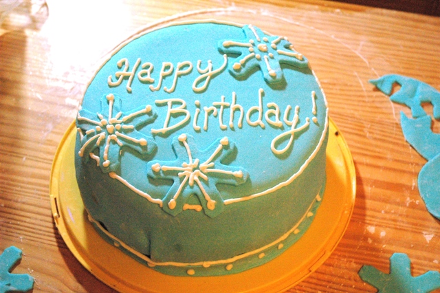 This year, I've decided to kick off the birthday bash with an elegant approach. Little baby has no appreciation of cartoon characters just yet, so I made a double-chocolate layer cake with vanilla and chocolate filling, topped with a robin's egg blue fondant.